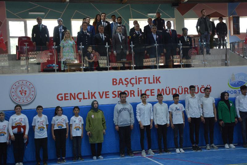 Başçiftlik Spor Salonu'ndaki törende şiirlerin okundu, koro etkinliği ve folklor gösterilerinin ardından sportif gösteriler düzenlendi.