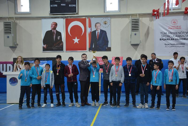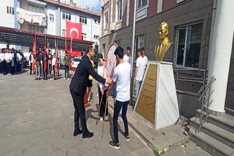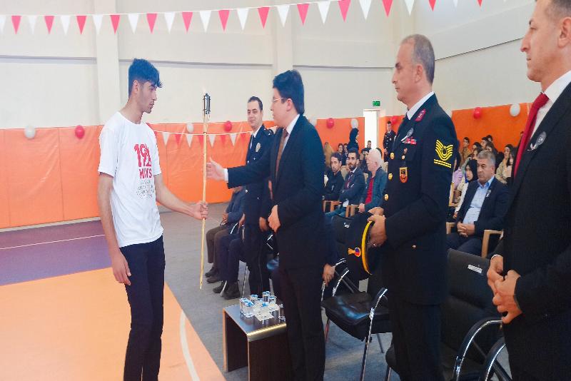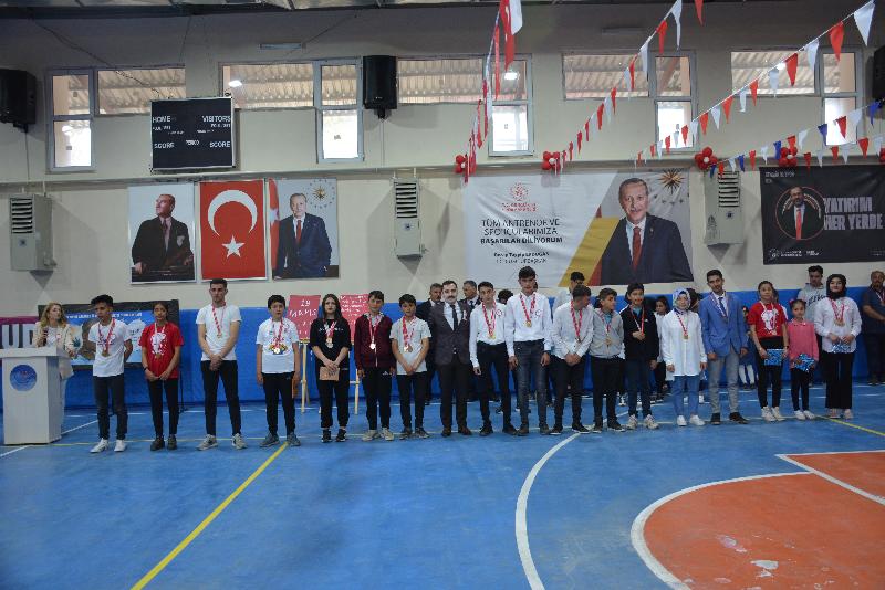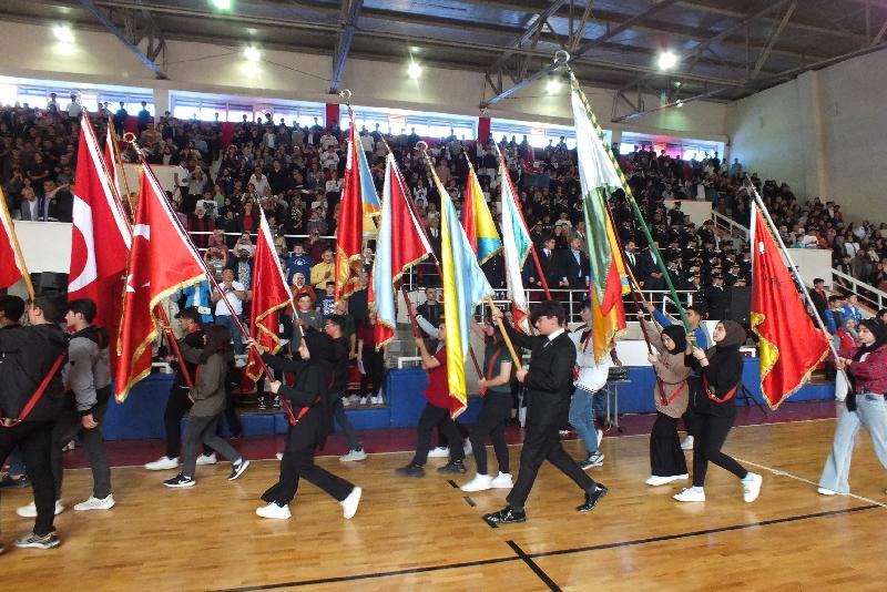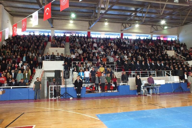 Mehmet Uzun Spor Salonu'nda düzenlenen törende Kaymakam Ali Gökay ve Belediye Başkan Yardımcısı Selim Kul, öğrencilerin ve vatandaşların bayramını kutladı.