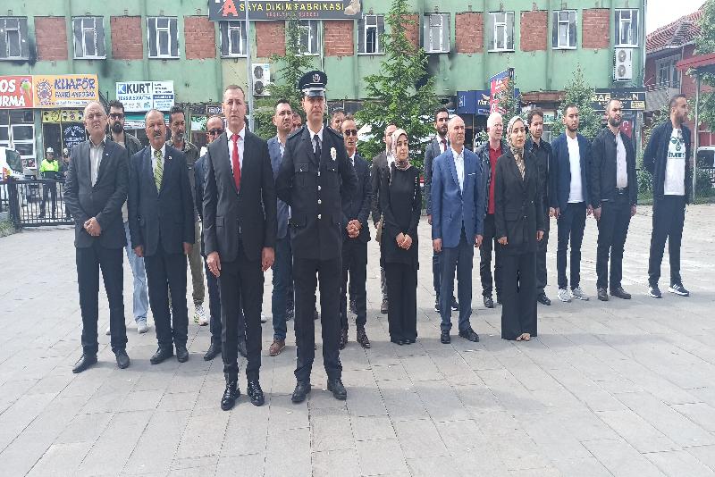 Hükümet Konağı önünde bulunan Atatürk Anıtı'na İlçe Gençlik ve Spor Müdürü Ömer Turan tarafından çelenk sunuldu, saygı duruşunda bulunulup İstiklal Marşı okundu.