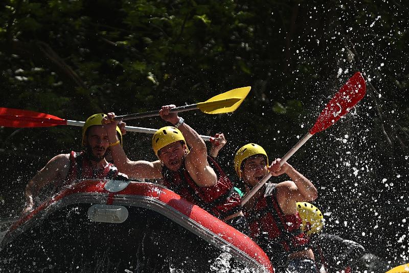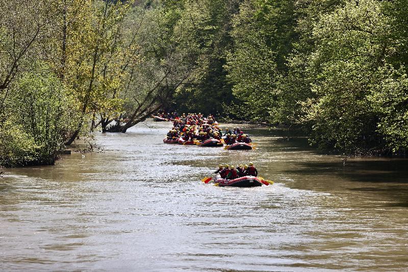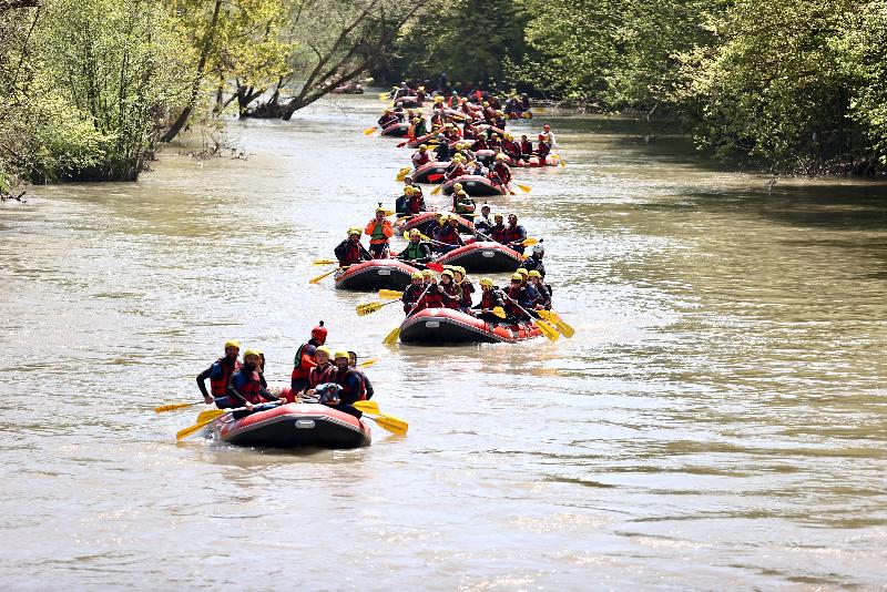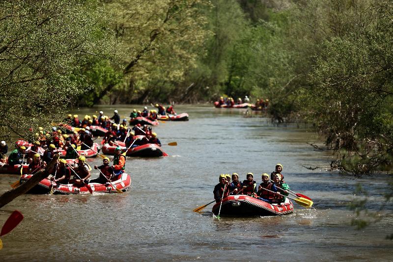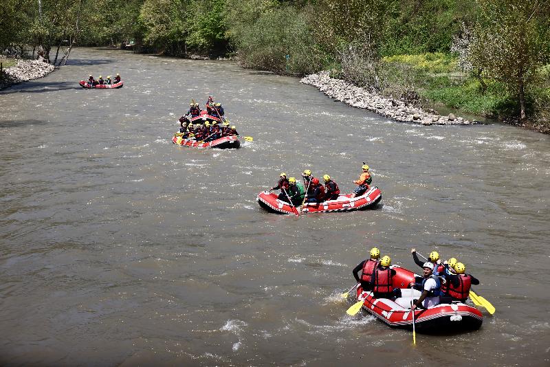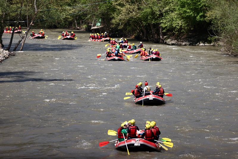 Dokuzdeğirmen mevkisinde düzenlenen rafting turları, bayram tatilinde yoğun ilgi gördü. Bayramın ikinci günü bölgeye gelen tatilciler, 16 kilometrelik parkurda doğayla iç içe rafting heyecanı yaşadı.