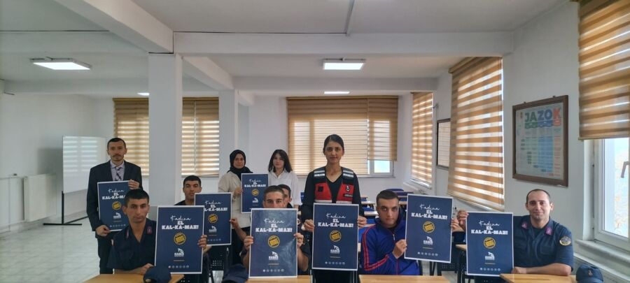 Zonguldak İl Jandarma Komutanlığı, Aile İçi Şiddetle Mücadele ve Çocuk Kısım Amirliğince, Aile Sosyal Hizmetler İl Müdürlüğü ve İl Müftülüğü ile müşterek olarak, Zonguldak İl Jandarma Komutanlığı İnteraktif Eğitim Dersliğinde, “Aile İçi Şiddetle Mücadele, Evlilik Öncesi Eğitim, Aile Kavramı, Kadının Dinimizdeki Yeri” konularında birliğimize katılış yapan jandarma erlerine kadına yönelik şiddetle mücadelede (5) milyon erkeğe farkındalık oluşturmak maksadıyla #KadınaElKalkamaz mottosuyla bilgilendirme faaliyeti yapılmıştır.