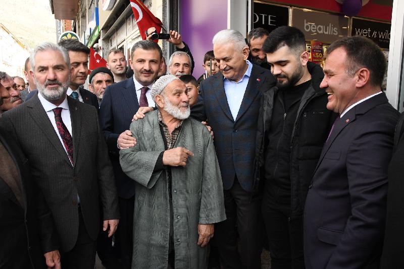 Gümüşhane'de esnafı ziyaret eden Yıldırım, vatandaşlarla sohbet etti.