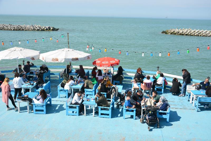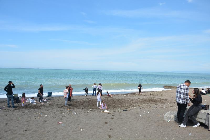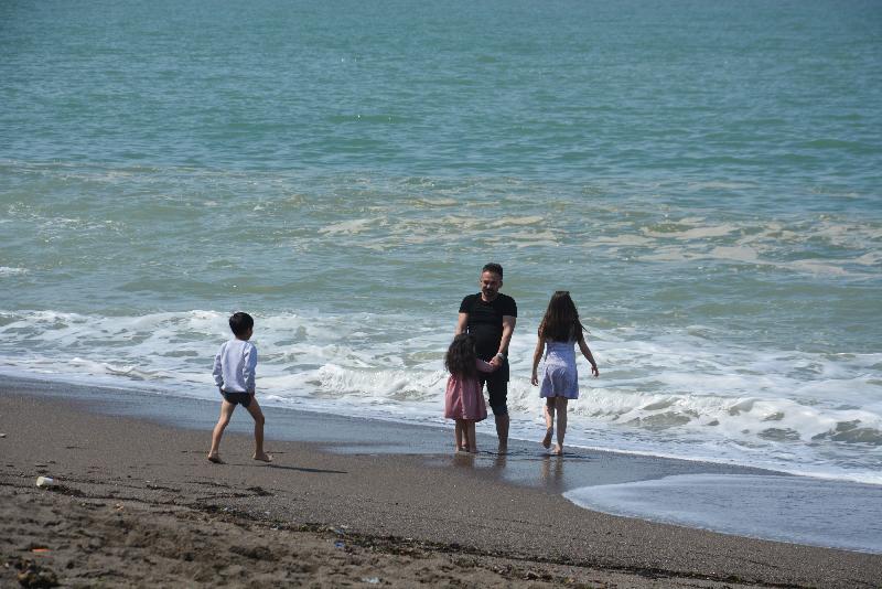 Hava sıcaklığın 20 derecenin üzerinde ölçüldüğü kentte, tatilciler ve ilçe halkı, Çuhallı plajına yoğun ilgi gösterdi.