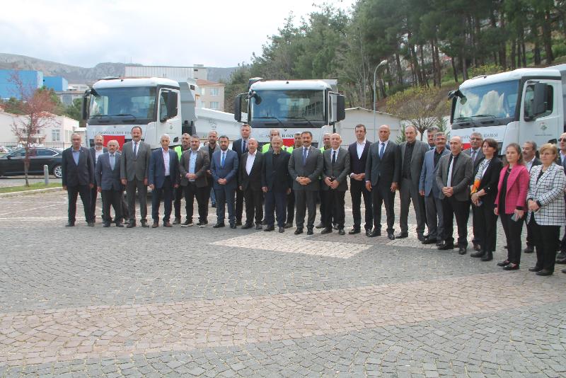 İl Özel Yönetimi bahçesinde, Vali Mustafa Masatlı, Vilayet Özel Yönetimi Genel Sekreter Erdin Acar ve Vilayet Genel Meclis Lideri Zeki Erarslan'ın da katıldığı merasimle kamyonlar hizmete girdi.