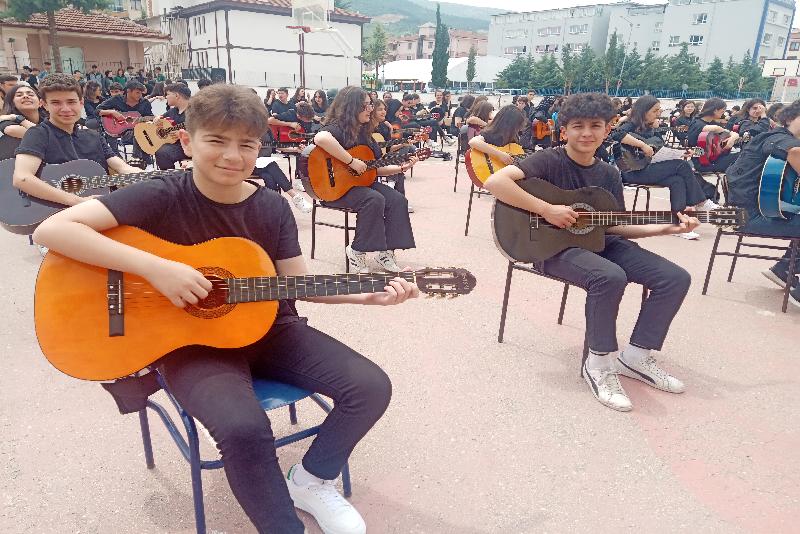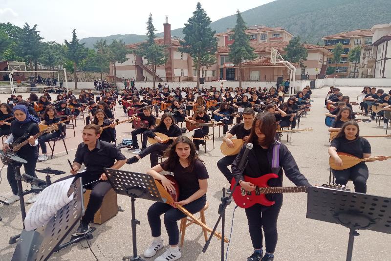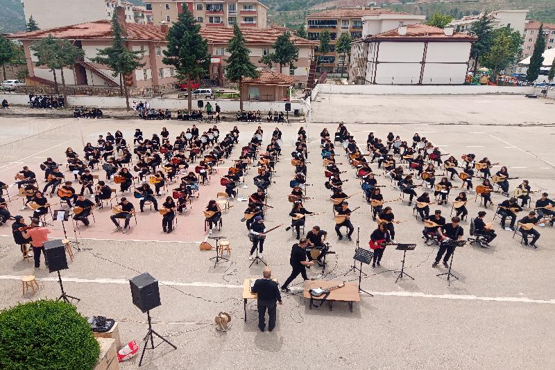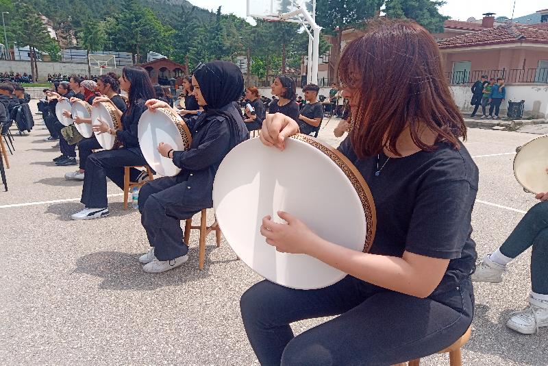 İlk konserlerini okul bahçesinde veren lise öğrencileri, 6 Şubat'taki depremlerin merkez üssü Kahramanmaraş yöresine ait, “İşte gidiyorum çeşmi siyahım” türküsünü de seslendirdi.