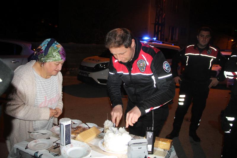 Daha sonra mahalle sakinleri tarafından polislere pasta ve çay ikram edildi.