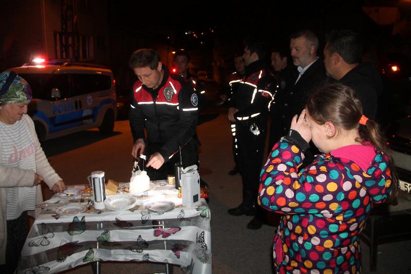 Karşılaştıkları sürpriz karşısında keyifli olduklarını belirten Komiser Yardımcısı Süleyman Elibol ise “Bu mahallede büyük bir hengame olduğunu beyan ettiler, yaralamalı biçimde. O yüzden süratli biçimde geldik. Müdahale etmek için geldik. Sağ olsun mahalleli günümüzü kutlamak için bu türlü bir şey yapmışlar. Keyifli olduk, teşekkür ediyoruz kendilerine” tabirlerini kullandı.