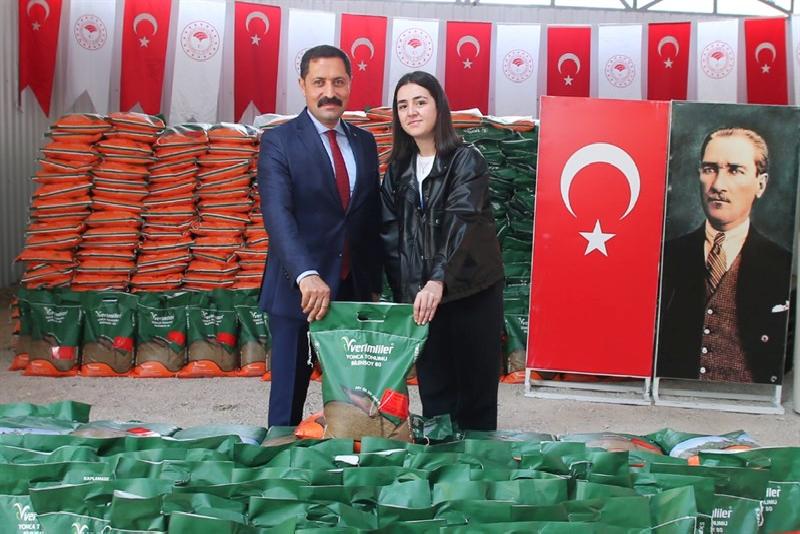 Konuşmaların akabinde yonca tohumları Vali Masatlı ve protokol üyelerince hak sahibi çiftçilere dağıtıldı.