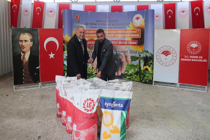 AMASYA – 67aydinhaber – Amasya Valiliği tarafından “Kuru Tarım Alanlarında Yağlık Ayçiçeği Ekimini Teşvik Projesi” kapsamında çiftçilere yağlık ayçiçeği tohumu dağıtıldı.