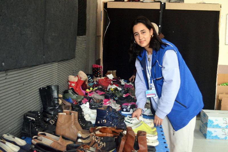 Merzifon Kaymakamlığı koordinesinde başlatılan yardım kampanyası kapsamında hayırseverlerin dayanağıyla spor salonunda oluşturulan toplumsal market'te kıyafet, ayakkabı ve oyuncak reyonları yer alıyor.