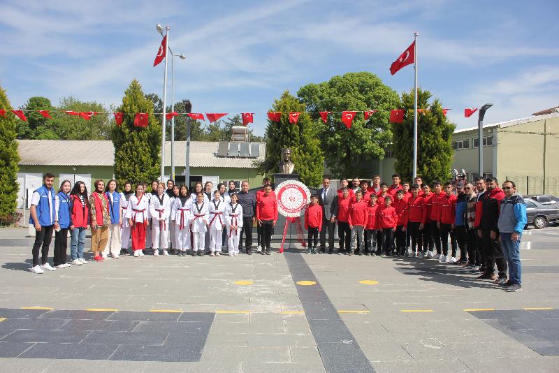 Gençlik ve Spor İl Müdürü Haşim Murat Öztürk, Yavuz Selim Meydanı'daki törende, Atatürk Anıtı'na çelenk sundu.