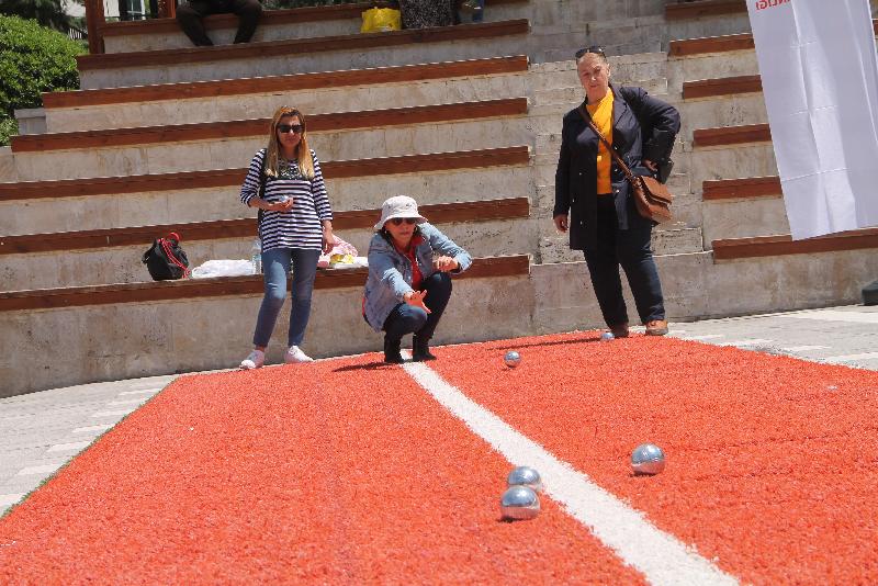 Meydanda kurulan spor stantlarında, vatandaşlar tenis, dart, basketbol ve bocce gibi harekete dayalı spor dallarını deneyimleme fırsatı buldu.