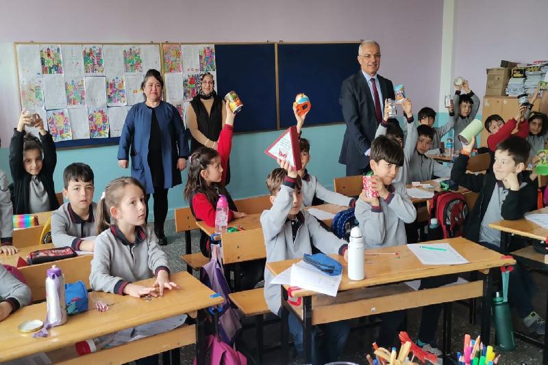 Şehit Polis Muzaffer Öztaş İlkokulu'nda da bu kapsamda “Kumbaramı Depremzedelere Bağışlıyorum” kampanyası başlatıldı.