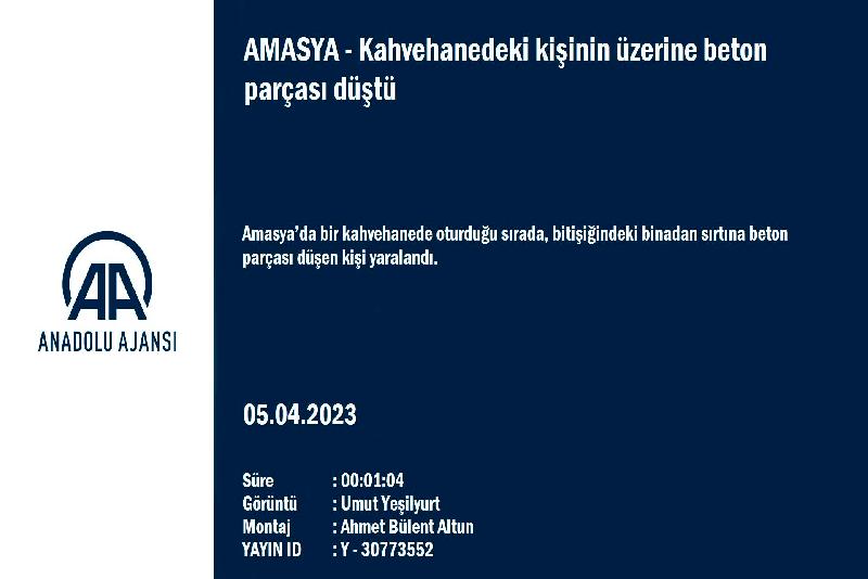 AMASYA – 67aydinhaber – Amasya’da bir kahvehanede oturduğu sırada üzerine beton kesimi düşen kişi yaralandı.