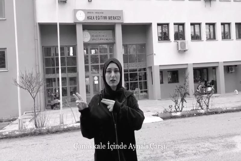 AMASYA – 67aydinhaber – Amasya'nın Merzifon ilçesinde kursiyerler, 18 Mart Şehitleri Anma Günü ve Çanakkale Deniz Zaferi'nin 108. yıl dönümü hasebiyle klip çektikleri “Çanakkale Türküsü”nün kelamlarını işaret lisanıyla anlattı.