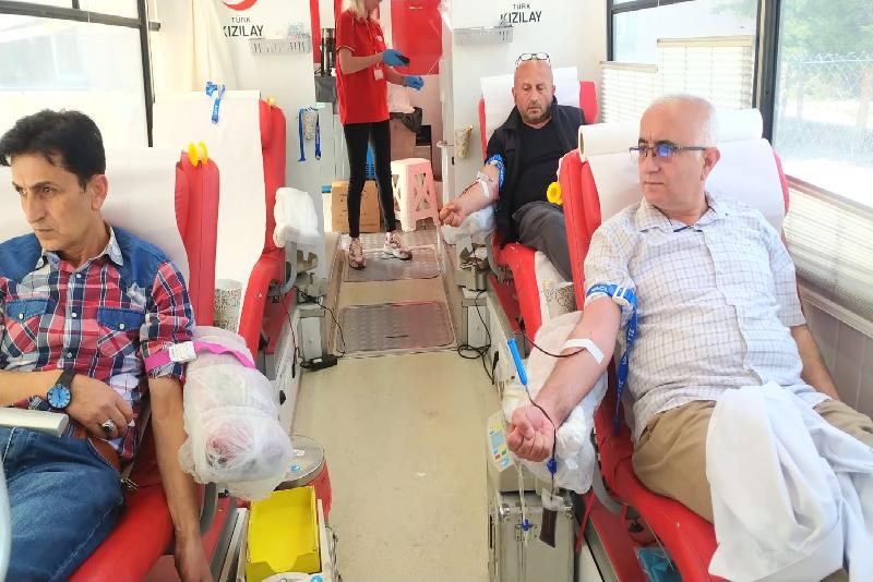 Kent genelinde görev yapan öğretmen ve öğrenci velileri, Bahçeleriçi Şehit Recep Gülen İlkokulu bahçesinde konuşlandırılan Türk Kızılay aracında kan bağışında bulundu.