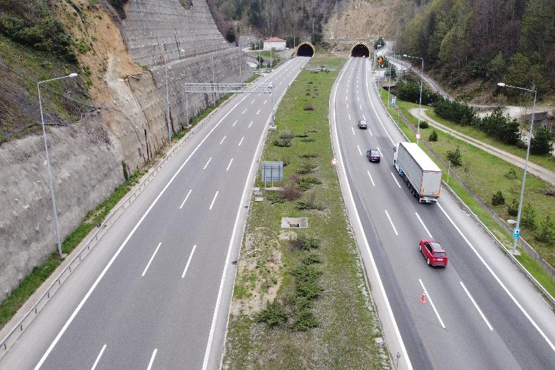 – Hazırlıkların tamamlandığı Anadolu Otoyolu Bolu Dağı Tüneli kısmı havadan görüntülendi