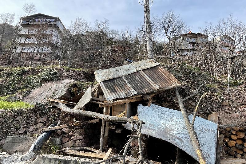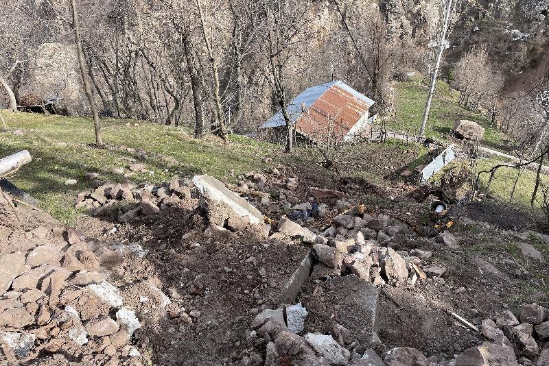 Temel Ayık da yamaçtan düşen kaya kütlesinin meskenlerinin yanından geçerek babasına ilişkin tarlaya düştüğünü söyledi.