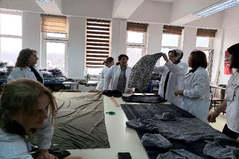 ARTVİN – 67aydinhaber – Artvin'deki halk eğitimi merkezlerinde usta öğretici ve kursiyerler, Kahramanmaraş merkezli 6 Şubat'ta meydana gelen sarsıntılardan etkilenen vilayetlere gönderilmek üzere kıyafet hazırlıyor.