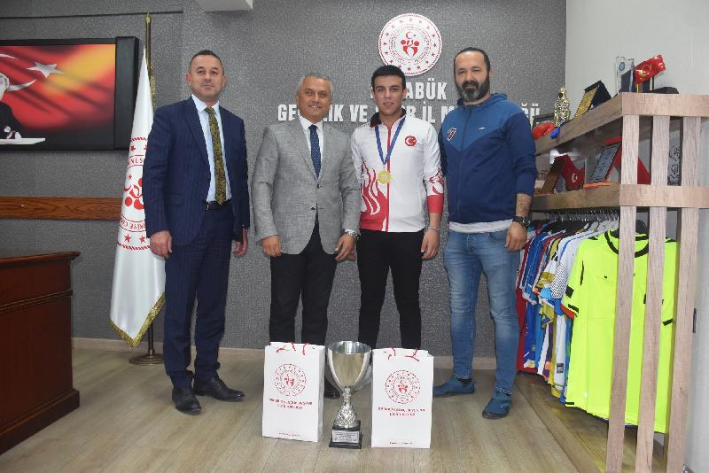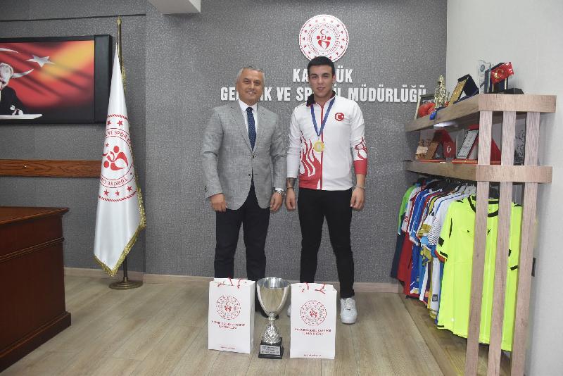 KARABÜK – 67aydinhaber – Gençlik ve Spor Vilayet Müdürü Coşkun İtimat, Türkiye Bilardo Federasyonunun mesken sahipliğinde Antalya'da düzenlenen Avrupa Şampiyonası'nda, erkekler küçük masa kulüpler kategorisinde şampiyon olan Doğukan Çorbacı'yı kabul etti.