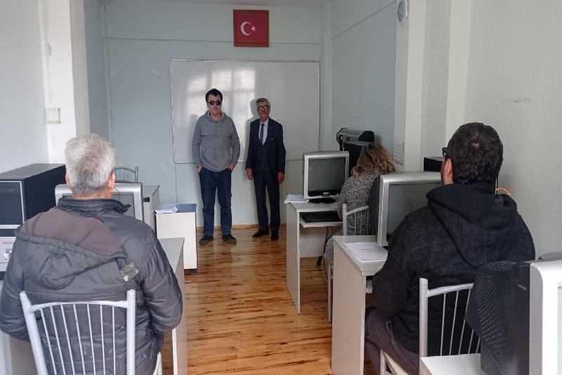 Eğitimler, Halk Eğitim Merkezi öğretmeni Hasret Beslen tarafından Bafra Görme Engelliler Derneği'nde veriliyor.