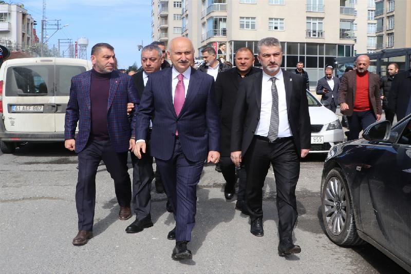Ulaştırma ve Altyapı Bakanı Adil Karaismailoğlu'na, ziyaretlerinde milletvekili adayları AK Parti Genel Lider Yardımcısı Mustafa Şen, Yılmaz Büyükaydın, Vehbi Koç, Meryem Sürmen ve Zafer Ofluoğlu ile AK Parti Vilayet Lideri Sezgin Mumcu eşlik etti.
