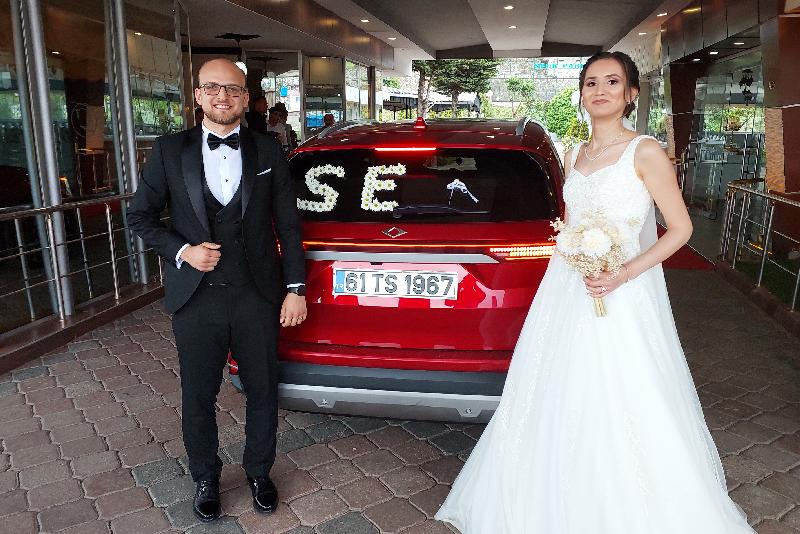 TRABZON – Ulaştırma ve Altyapı Bakanı Adil Karaismailoğlu, makam aracı Togg'u Trabzon'da evlenecek çifte gelin arabası olarak tahsis etti.