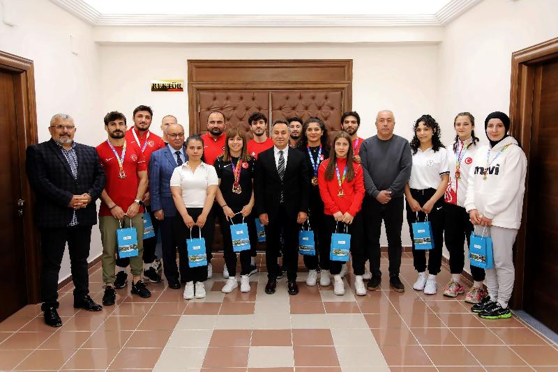 Yılmaz, “Türkiye ve dünyada çeşitli müsabakalarda hem ülkemizin hem de üniversitemizin adını duyurarak bizleri onurlandıran öğrencilerimizi gönülden tebrik ediyorum.” dedi.