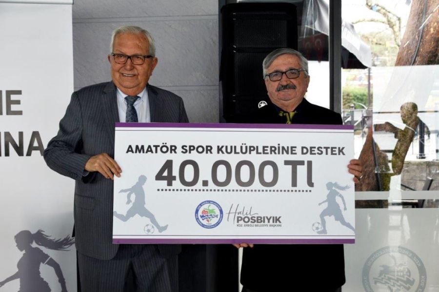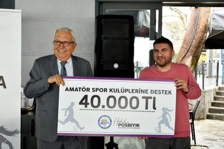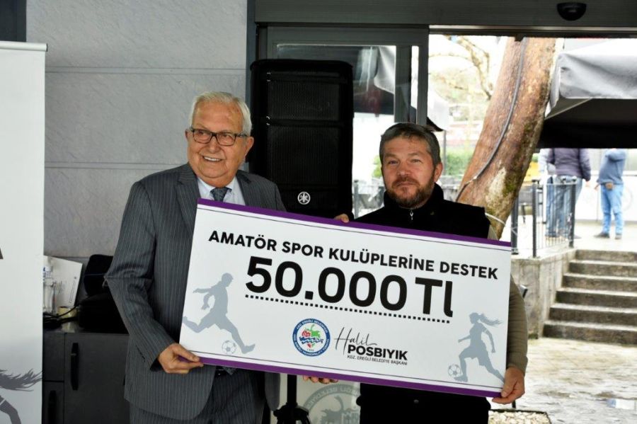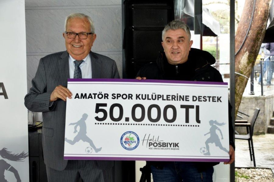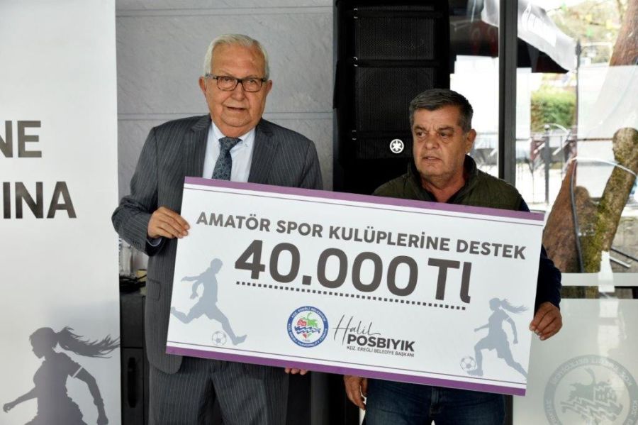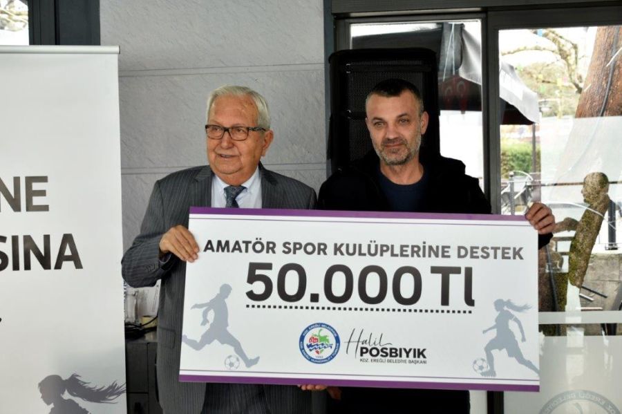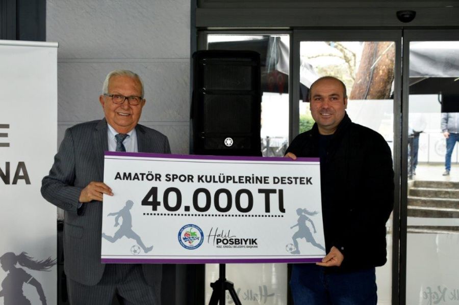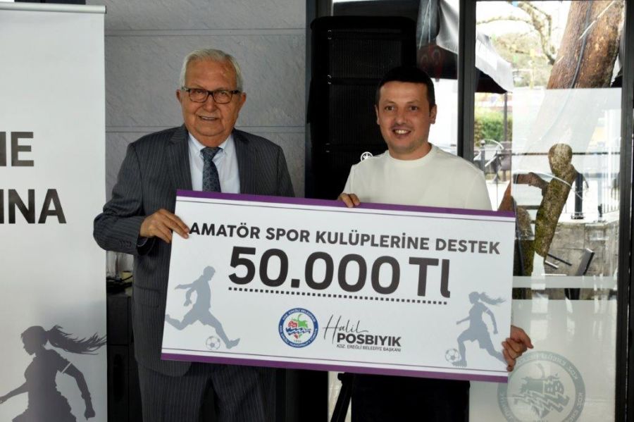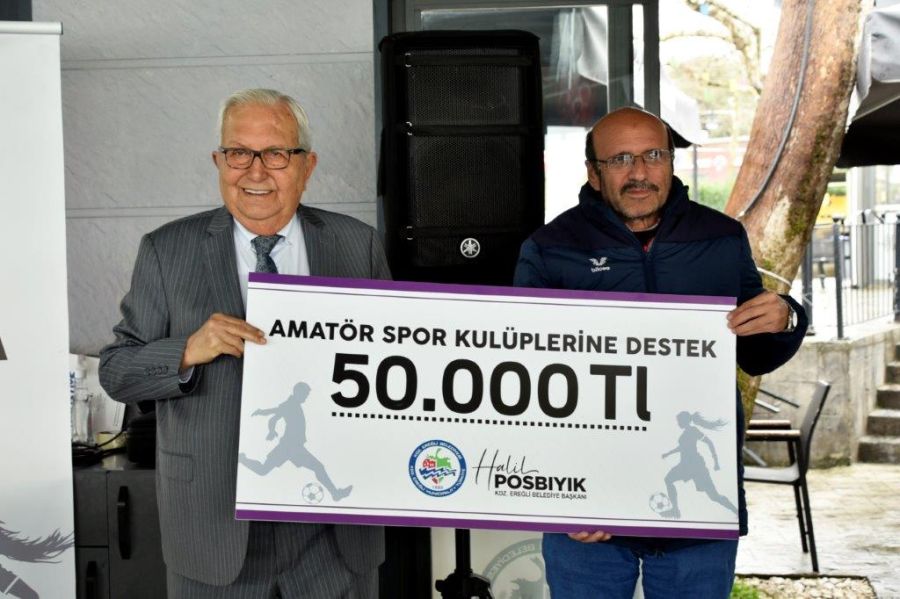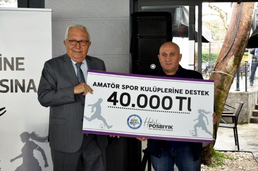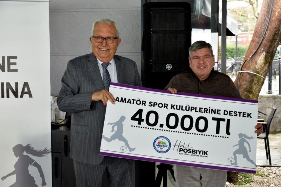 Kdz. Ereğli Belediye ve Belediyespor Kulüp Başkanı Halil Posbıyık, kentteki amatör spor kulüplerinin başkan ve yöneticileriyle bir araya gelerek 19 kulübe 900 bin TL nakdi yardımda bulundu. Başkan Posbıyık, sıkıntılı durumda dahi amatör spor kulüplerine desteği sürdürdüklerini belirterek, Ereğli’ye stat yapılması için milletvekillerine çağrıda bulundu.