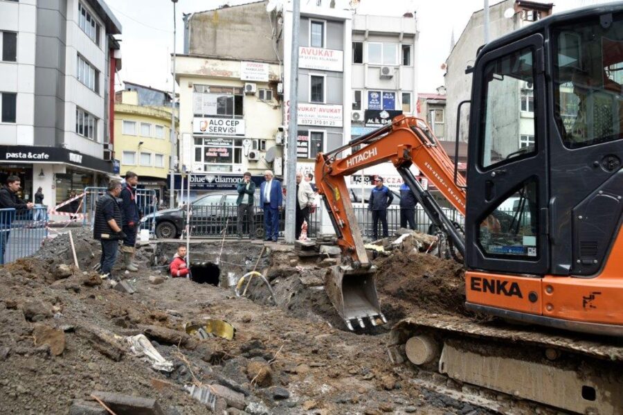 Un pazarında belediyenin yaptığı çalışmayı yerinde denetleyen Başkan Posbıyık, Su ve Kanalizasyon İşleri Müdürü Deniz Koca’dan brifing aldı.