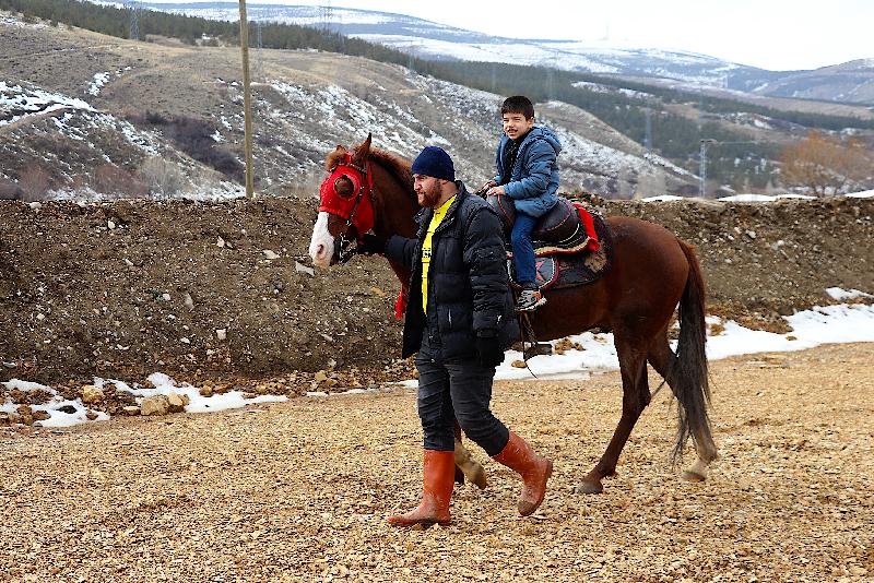 Gaziantep'ten gelen 11 yaşındaki Muhammet Ethem Deniz, at binerek keyifli vakit geçirdiğini lisana getirdi.