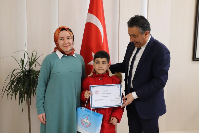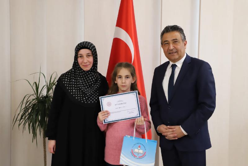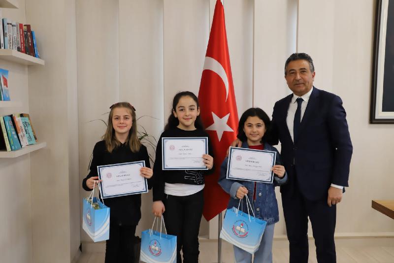 Güney, daha sonra dereceye giren öğrencilere mükafatlarını verdi.