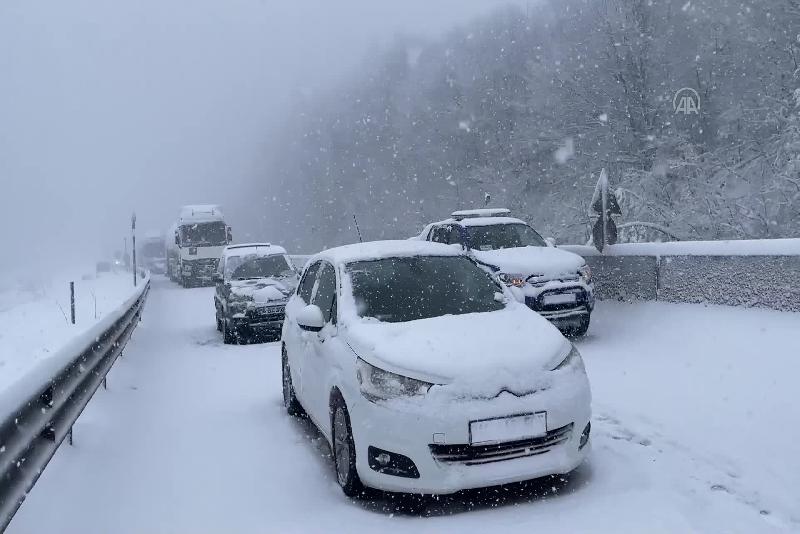 Kara yolunun Bolu Dağı kesitinde gün uzunluğu aralıklarla devam eden kar yağışı, ağırlaştı.