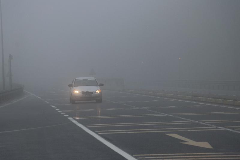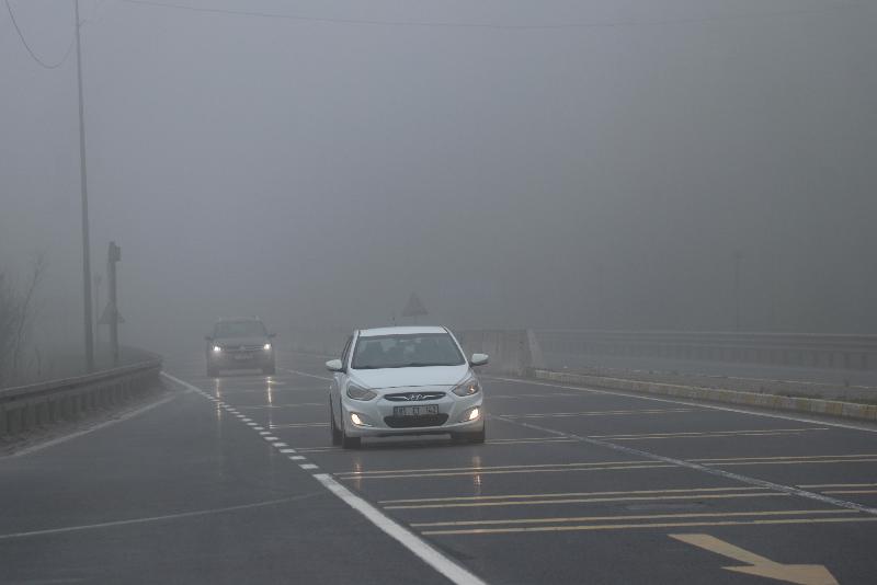 Sis nedeniyle görüş mesafesinin azaldığı bölgede, sürücüler yolda dikkatli ilerliyor.