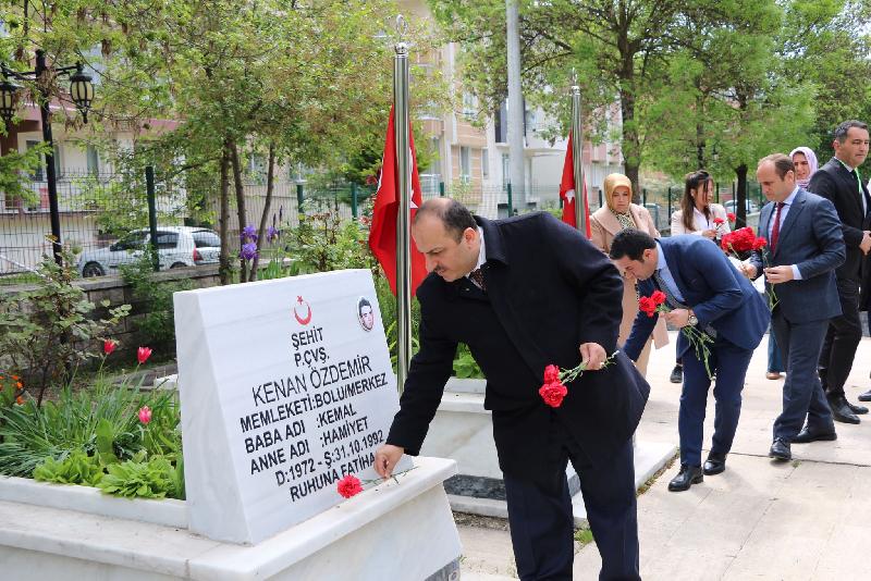 Halk oyunlarının sergilendiği programda Şehit Mezarlığı ziyaret edilerek kabirlere karanfil bırakıldı, dua edildi.