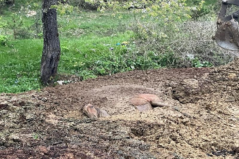 Bölgeye gelen ekiplerin hayvanı kurtarma çalışması sonuç vermeyince Bolu Belediyesi Fen İşleri Müdürlüğünden iş makinesi istendi.