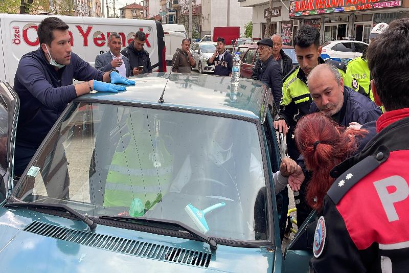 Kazada yaralanan sürücü, ekiplerce araçtan indirilemedi. Şoka giren sürücü, olay yerine çağrılan oğlu ve ekiplerin çabası sonucu ikna edildi.