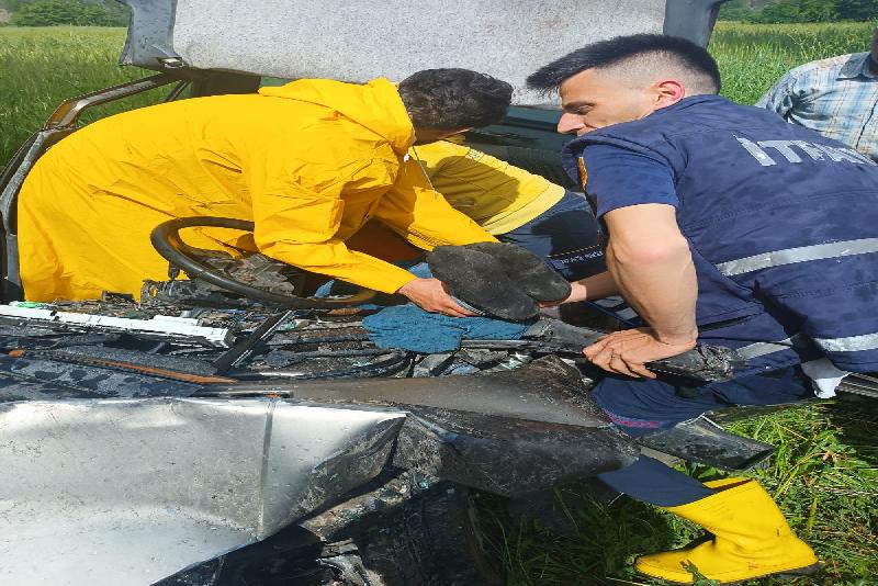 Kazada, araçta sıkışan sürücü Uğur Dündar, Boyabat Belediyesi itfaiye ekiplerince bulunduğu yerden çıkarıldı.