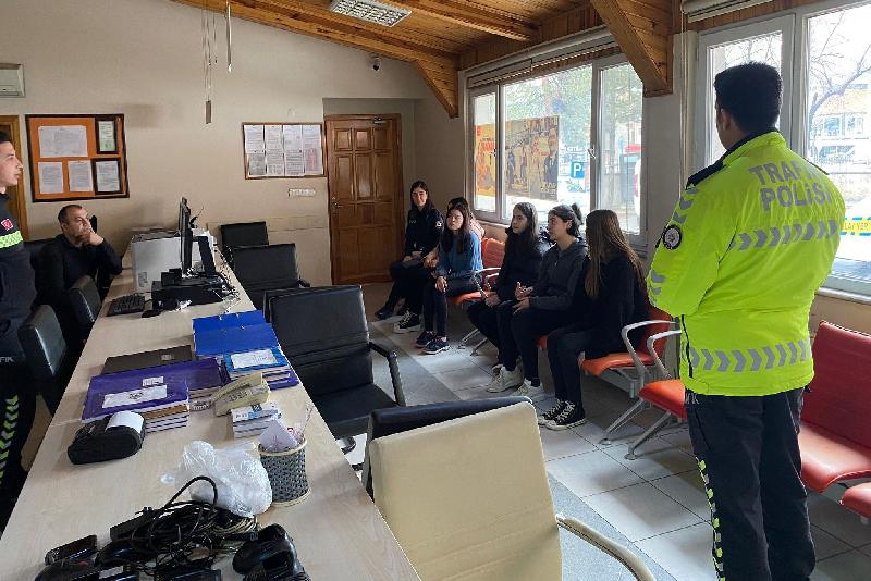 İlçe Emniyet Müdürlüğünce emniyet binasında konuk edilen öğrencilere, polislik mesleği hakkında genel bilgiler aktarıldı.