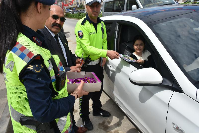 SİNOP – Sinop'un Boyabat ilçesinde Karayolu Güvenliği ve Trafik Haftası kapsamında düzenlenen etkinlikte araç sürücüleri ve yayalar bilgilendirildi.