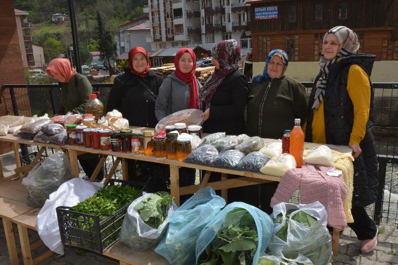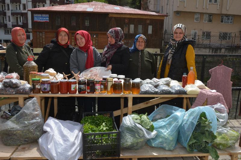 Kadınlar, konutlarında ürettikleri reçel, kesme erişte, tarhana, meyve kurusu, turşu, sirke, hamur işi üzere eserler ile tarlalarından topladıkları lahana, pazı, maydanoz üzere zerzevatları, Çaykara ilçe merkezinde kurulan pazara getiriyor.
