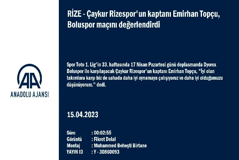 RİZE – 67aydinhaber – Spor Toto 1. Lig'in 33. haftasında 17 Nisan Pazartesi günü deplasmanda Dyorex Boluspor ile karşılaşacak Çaykur Rizespor'un kaptanı Emirhan Topçu, “İyi olan gruplara karşı biz de alanda daha yeterli oynamaya çalışıyoruz ve daha uygun olduğumuzu düşünüyorum.” dedi.