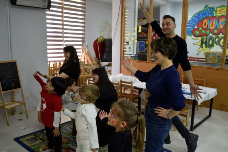 Son olarak atölyemizde ağırladığımız Yeni Yaşam Özel Eğitim ve Rehabilitasyon Merkezinden gelen 3-4-5 yaşlarındaki otizmli çocuklarımızla eğitici, eğlenceli ve hareket etkinlikleri yapıldı. Atölye sonunda çocuklara yüz boyama etkinliği yapılarak , kitap armağan edildi.”