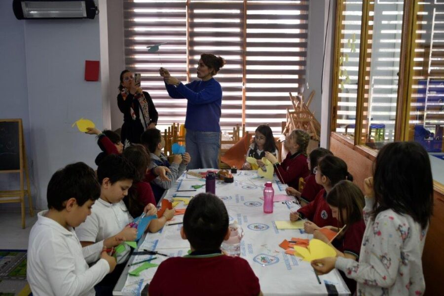 İlk olarak Süleyman Demirel İlkokulu öğrencilerine kağıt hamuru atölyesi gerçekleştirildi. Atölye Koza – Sema Yüksek liderliğindeki atölye kağıt hamuru ile dönüşüm etkinliği gerçekleştirip, çocuklara atölye sonunda yaptıkları objeler armağan edildi. Öğleden sonra ise Nurdan ve Ahmet Orhan Oğuz İlkokulu öğrencileri ile kolaj çalışması gerçekleştirildi. Atölye liderimiz Parya Başkurt çocuklara geri dönüşümü anlattı ve çalışmalarında liderlik yaptı.