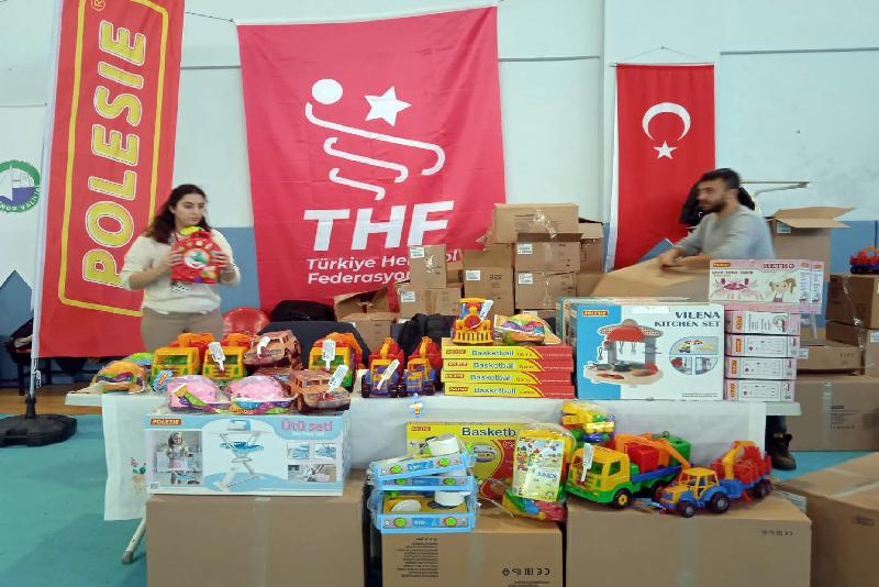 Fabrikanın genel müdür yardımcısı Hasan Başak, AA muhabirine, sarsıntının birinci anından itibaren bölgeye oyuncak ve çeşitli yardımlar ulaştırmaya başladıklarını söyledi.