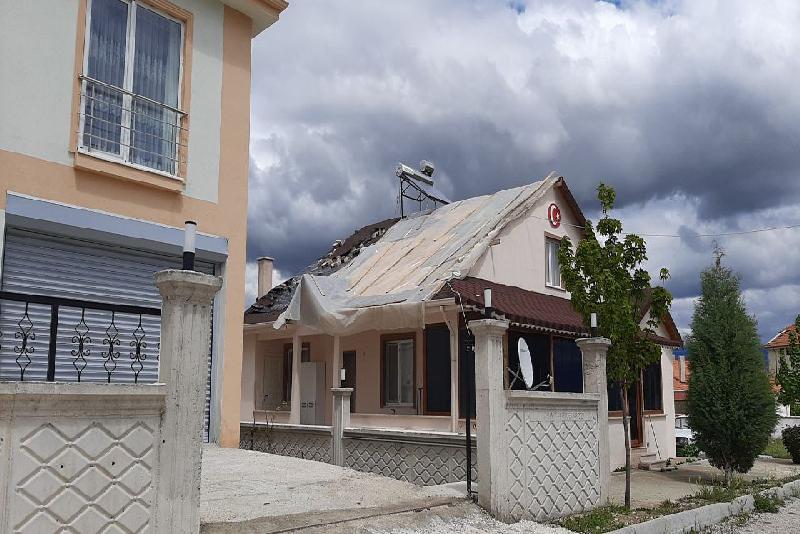 Kuvvetli rüzgar nedeniyle Esentepe Mahallesi Doktor Sadık Ahmet Caddesi'ndeki tek katlı evin çatısı ile ilçe merkezindeki bir metruk ev zarar gördü.