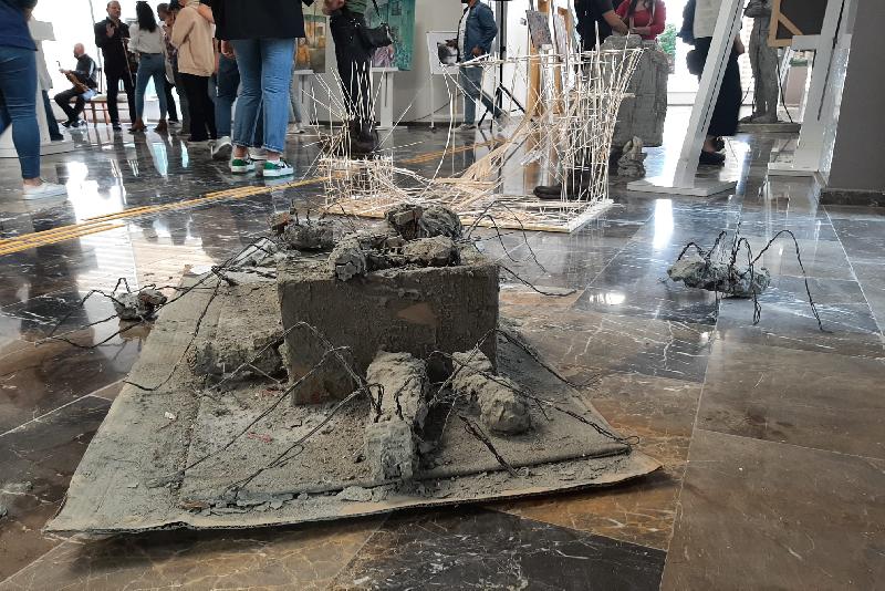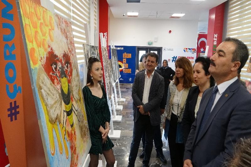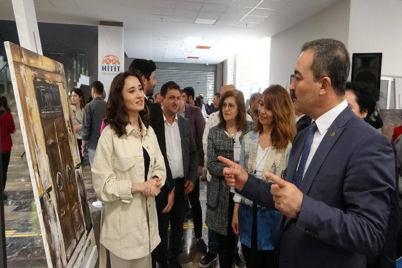 Hitit Üniversitesi Sosyal Yaşam ve Kültür Merkezi'ndeki sergide, öğrencilerin yıl boyu hazırladığı tuval üzerine akrilik, yağlı boya ve karışık teknik kolaj uygulamaları ile dijital çalışmalar, fotoğraf ve enstalasyon örnekleri yer aldı.