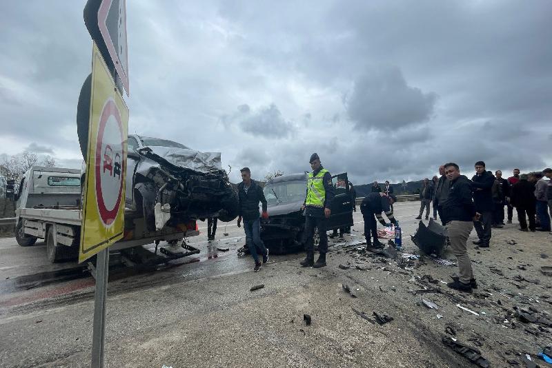 Çarpışmanın etkisiyle savrulan otomobil, istinat duvarına çarparak durdu. Kazada, 3 kişi yaşamını yitirdi, 2 kişi yaralandı.