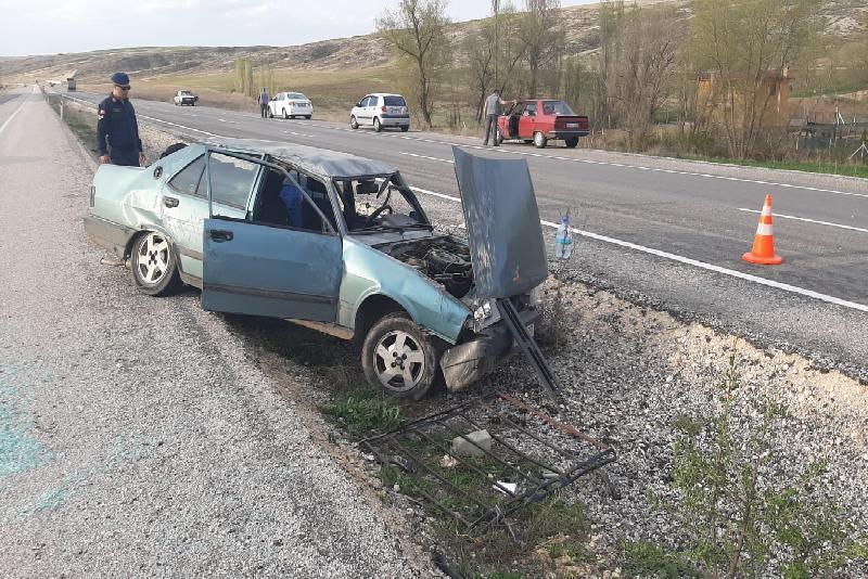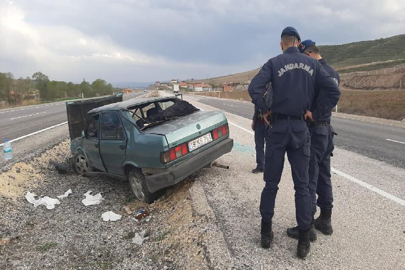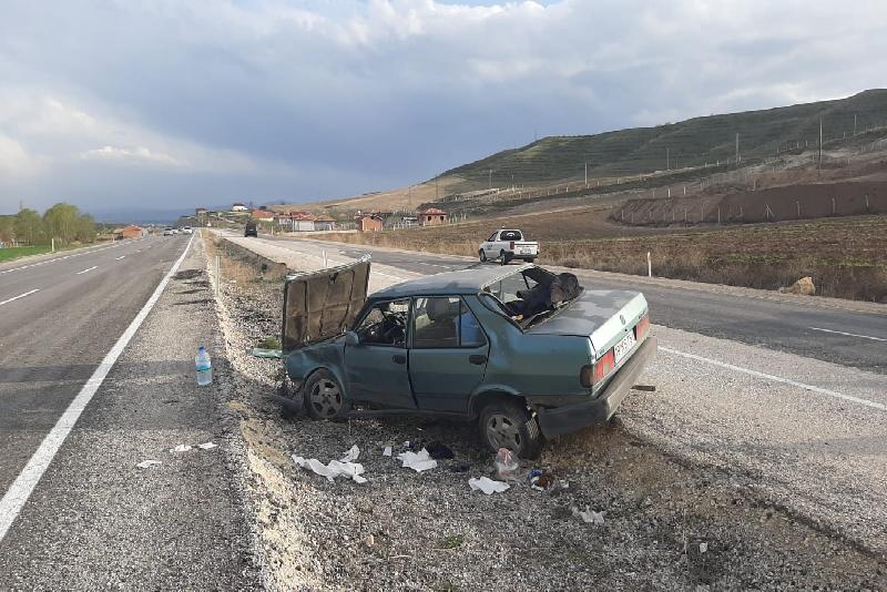 Kazım Ç. (79) yönetimindeki 19 KS 751 plakalı araba, Çorum-Osmancık kara yolu 19'uncu kilometresinde refüje çarparak devrildi.