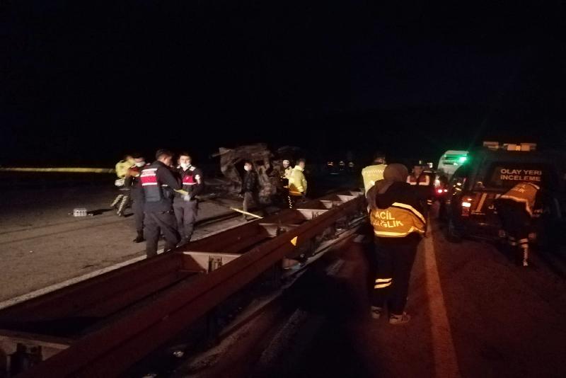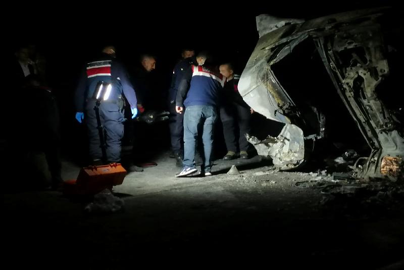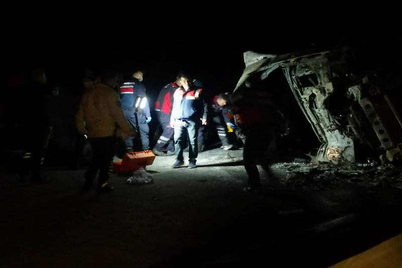 İtfaiye takımlarınca çıkan yangının söndürülmesi sonrası yapılan incelemede, tırın kabininde sıkışan 2 kişinin öldüğü tespit edildi.